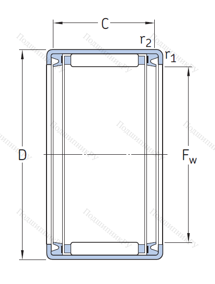 Игольчатый подшипник HK 2520 2RS имеет неразъемную конструкцию, в которую входят игольчатого вида тела качения и наружная штампованная шина. Как правило, является однорядным, без каналов для подачи смазочного материала.