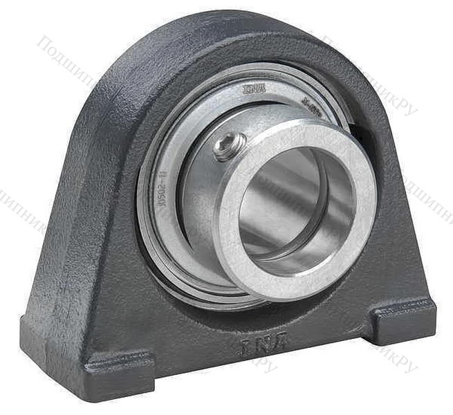 Корпус модели выполнен из серого, стойкого к износу чугуна, и имеет уплотнители разновидности R. Подшипник крепится в гнезде при помощи резьбовых штифтов. Деталь нуждается в периодическом смазывании внутренних элементов, поэтому имеет специально предназначенное для этого отверстие (как самому смазать закрытый подшипник посмотрите здесь).