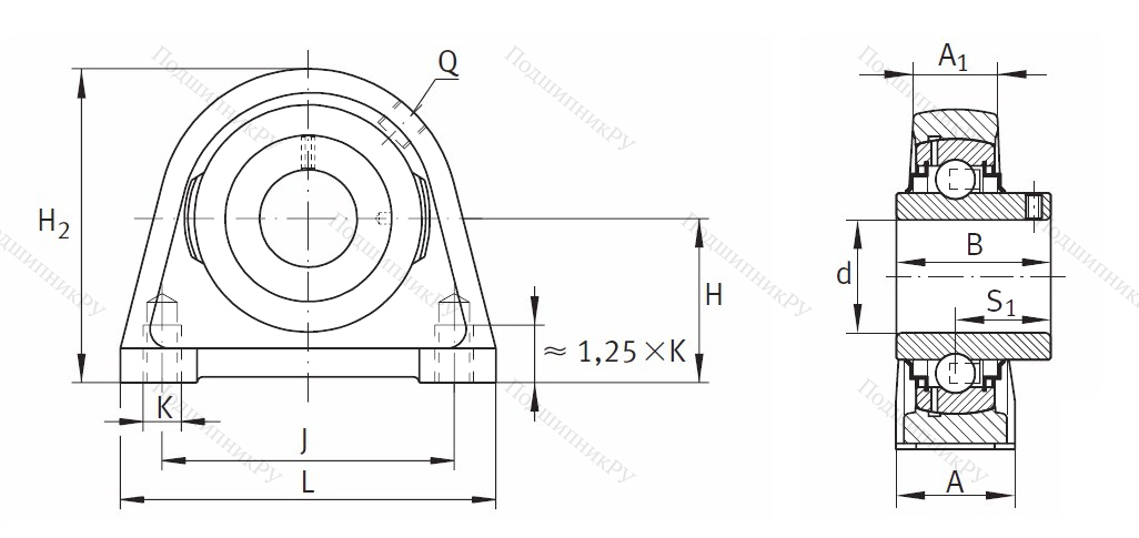 Корпус модели выполнен из серого, стойкого к износу чугуна, и имеет уплотнители разновидности R. Подшипник крепится в гнезде при помощи резьбовых штифтов. Деталь нуждается в периодическом смазывании внутренних элементов, поэтому имеет специально предназначенное для этого отверстие (как самому смазать закрытый подшипник посмотрите здесь).